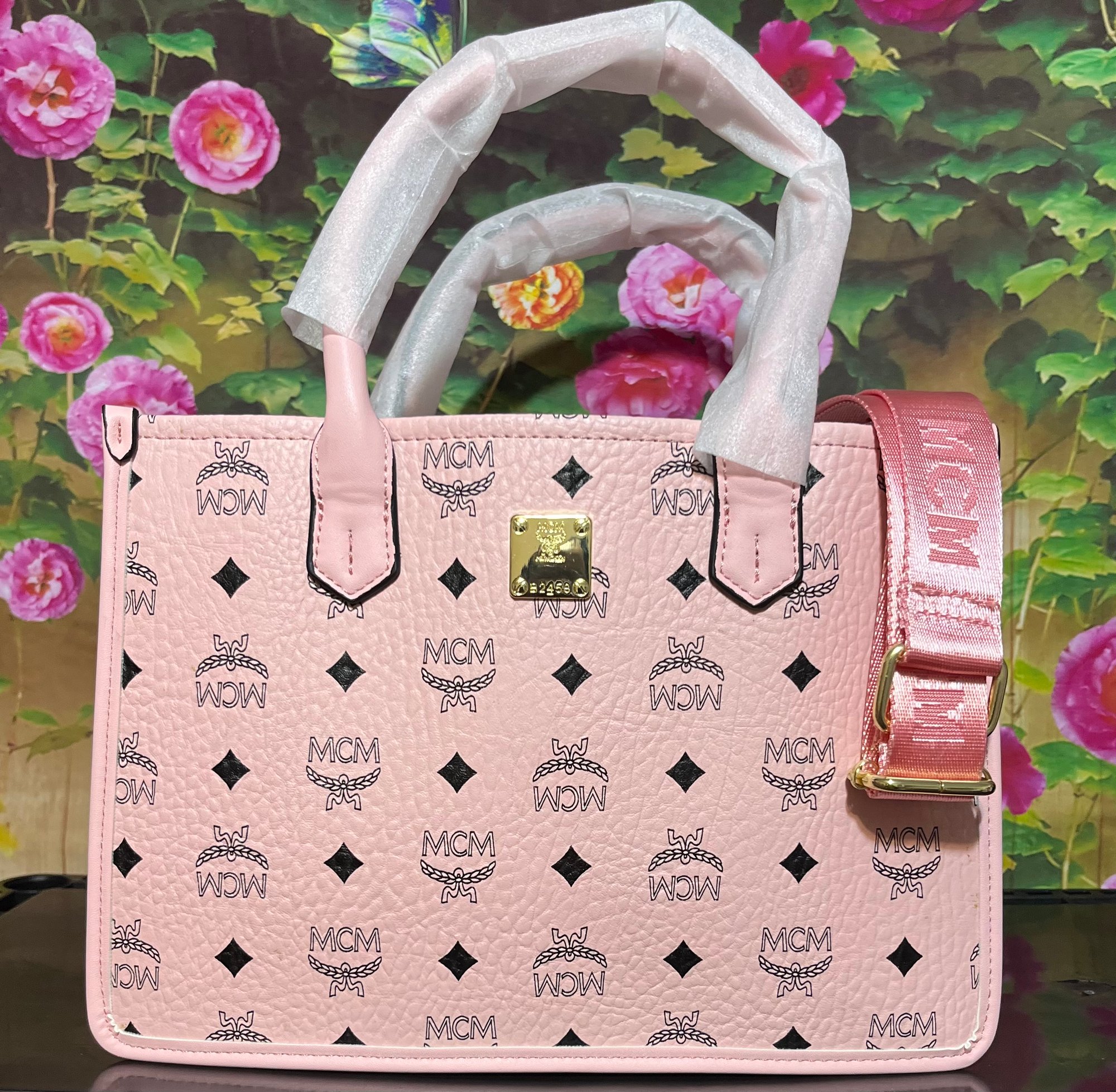 Beautiful pink tote. Hologram inside. Guitar strap. Dust bag. Measures 13x9 inches.