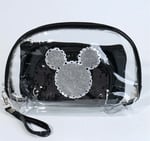 Super cute cosmetic wristlets. 3 piece set! You get the transparent bag, a sequin bag, and a shiny pouch, plus the wristlet strap. Great for cosmetics, hair accessories, or anything you want to store in style. Available in black, or pink.