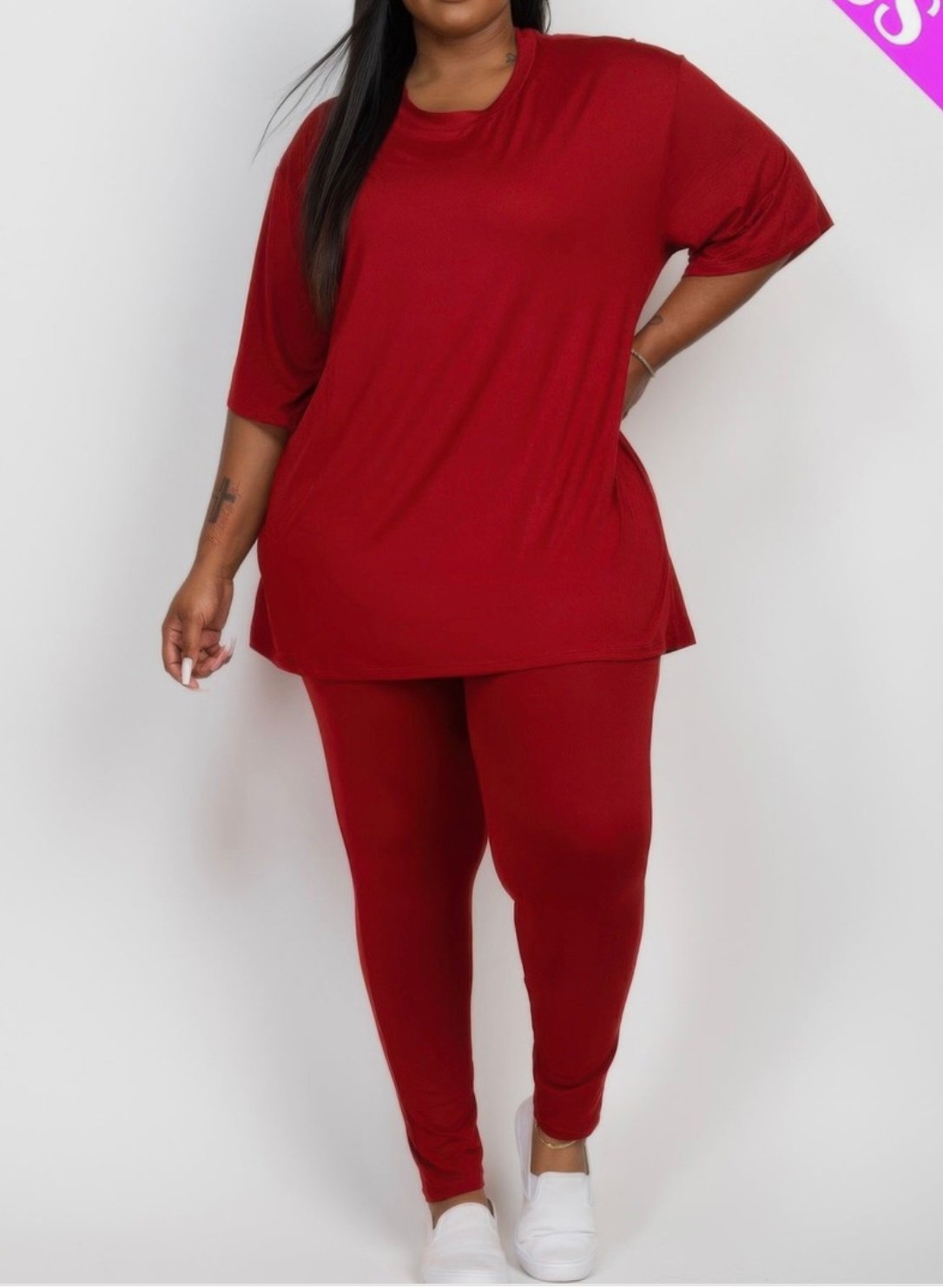 2 piece leggings sets. Oversized shirt with biker shorts. Super soft and comfortable on your skin. You can dress them up or down. 92% polyester 8% spandex.