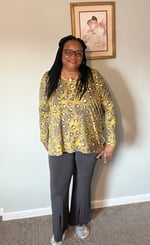 Beautiful Mustard yellow, and grey stone shirt. Dolman sleeves. Hi low! Stretchy and buttery soft. 95% polyester 5% spandex.